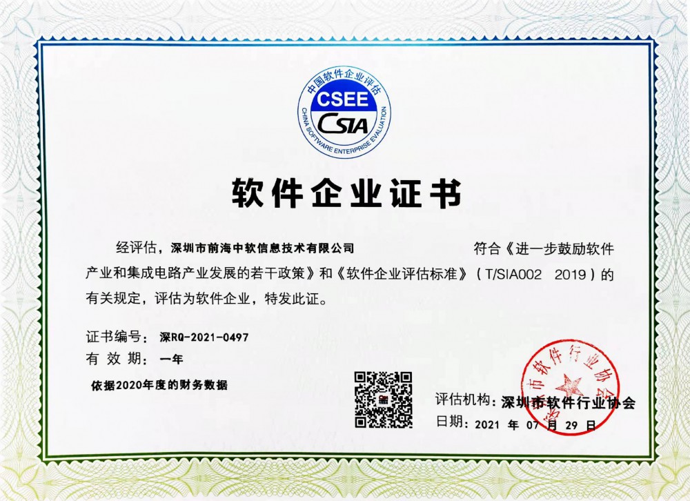 软件企业证书